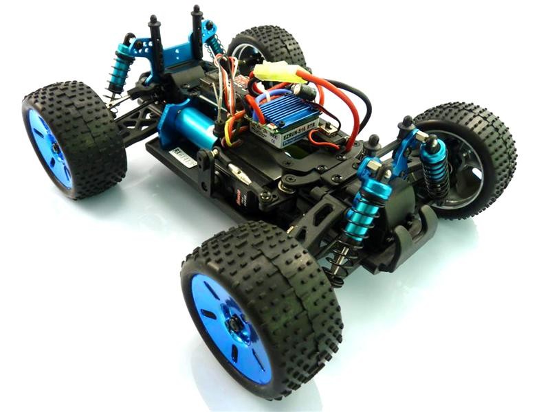 In the presented model was applied solutions tailored professional units, ie oil shock absorbers, adjustable suspension and reliable electric motor, which allows you to develop really high speed, for such a small toy car! Universal Design Type truggy will allow you to drive on almost any surface - at home, on the asphalt or in Terni. On the other hand, wide track and appropriately selected tires provide excellent traction and stability in all conditions.