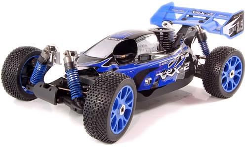VRX 2 is a high-quality car model rc competition-scale 1: 8. Powerful nitro engine GO21 it accelerates to over 100 km / h! Ideal for driving on earth and gravel. The car was designed to give the driver maximum driving pleasure at the huge speeds while requiring only the foundations of knowledge about the design and operation of internal combustion models. Acceleration is therefore one of the greatest strengths of this perfect buggusa.