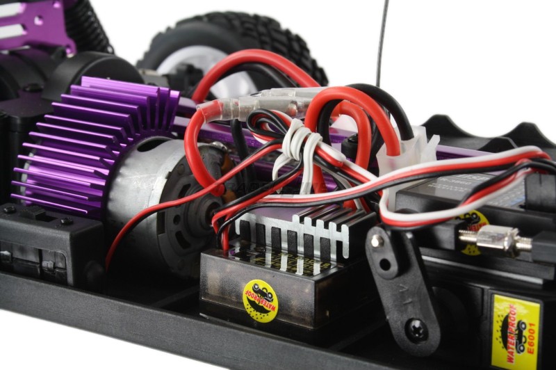 Characteristics of the car:Electric drive 4x4Profiled rubber tiresFoam bumpersAdjustable steering7.2V NiMH battery pack with a capacity of 1800mAhEngine RC 540 Hi-Torque armed with a radiatorThe strength 3kg servo and high torqueElektroniczyregulatorreverse rotation functionThe aluminum upper frameRatio: 1: 8133The aluminum drive shaftThe radio system2.4GHz