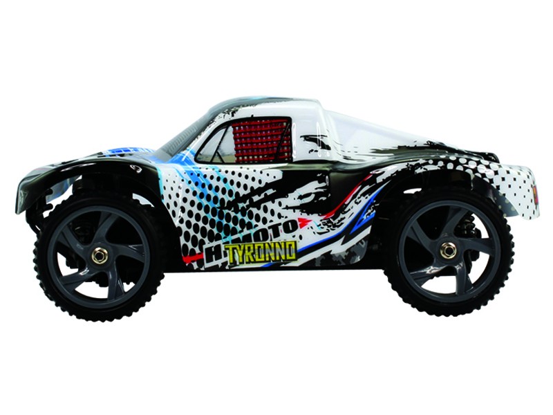 Himoto Tyronno is a model that not only can compete with other models of type short course, but some issues may even be better! In a 1:18 scale from the stable of well-known and respected brand H imoto Racing. The car was equipped with full wheel bearing, which rarely happens with other brands of the same class, where there are bushes instead of bearings. With this solution, service life is increased and the car are reduced rolling resistance, which translates into a significant performance car and the comfort of use.
