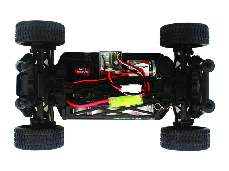 HimotoTruggy Centro, egy RTR modell, azaz Ready To Run tehát teljesen Menetkész változat, dobozból kivéve azonnal használható, csupán a távirányítóba szükséges a szokásos