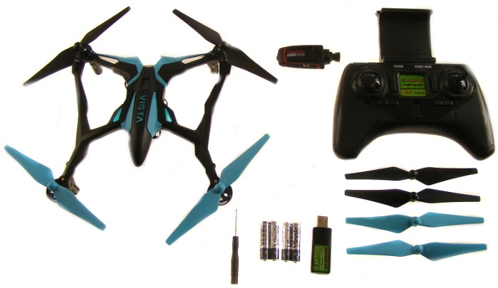Dromida Vista is the successor to the popular Galaxy model Nine Eagles Visitor 6. In contrast to its predecessor, it has a more attractive appearance, higher capacity battery, longer flight time and twice the capacity of the memory card.