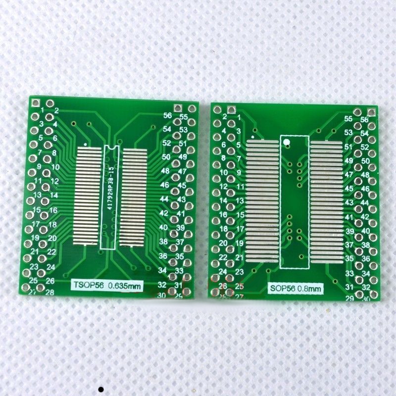 A side for pin pitch size 0.8mm, It can used for SOP56 /TSOPII 56 to 2.54mm DIP. Normally it is used to convert SDRAM Series chips.