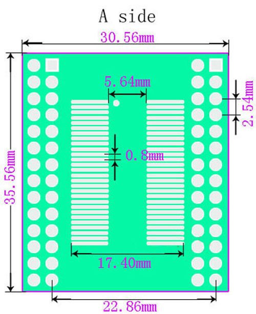 B side for pin pitch size 0.635mm, It can used for TSOPII 56 to 2.54mm DIP.