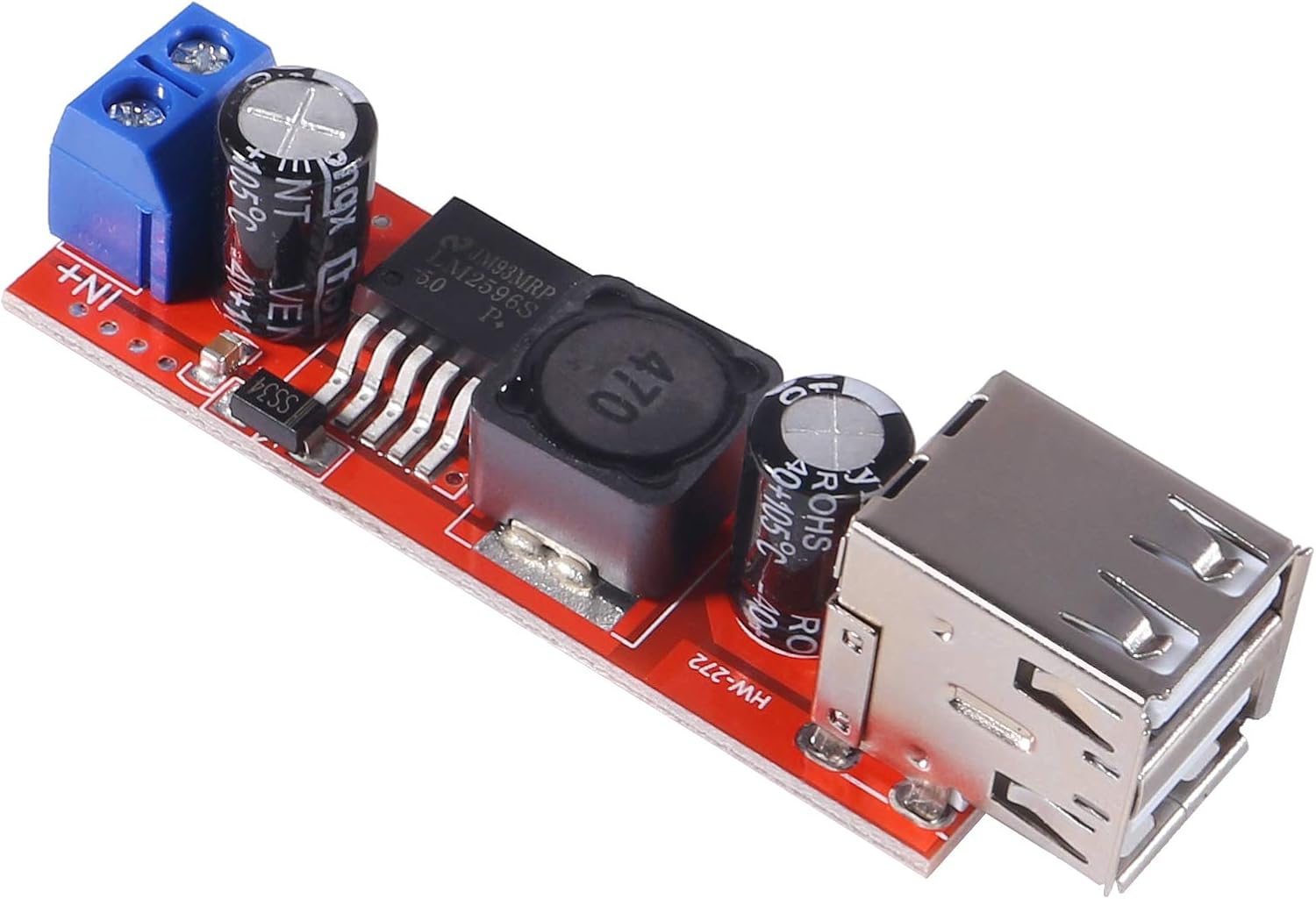 LE konvertáló DC-DC step-down topológiás modul, dupla USB töltő kimenettel