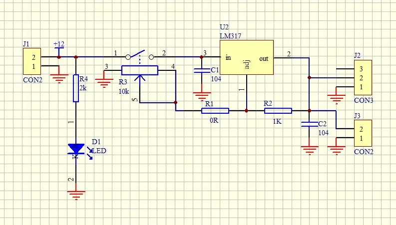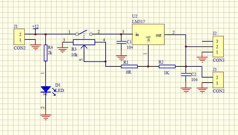 LM317 IC alapú lineáris feszültségszabályzó.