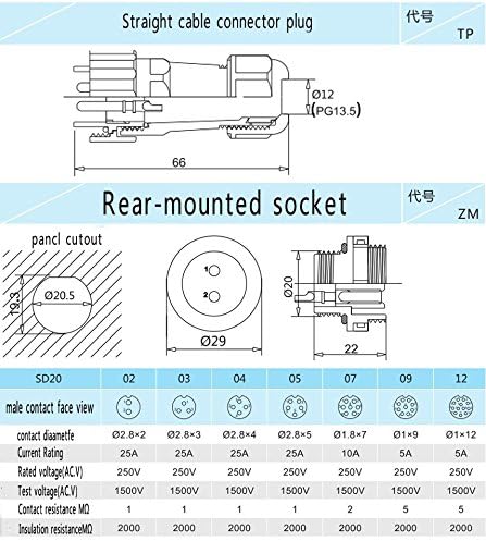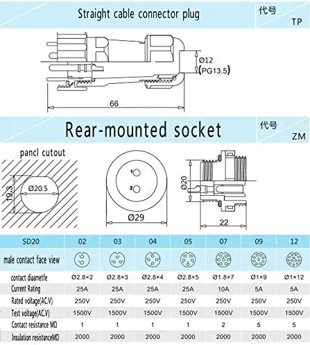 IP68-as védettségű, csatlaktozó, 5 érintekző, 20mm