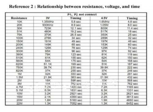 time can be adjusted from 2s-1000h.3. Available resistance adjusting timing, there are 8 * N (N = 0.1.2.3) times the timing selection, 4. Optional trigger timing and triggering termination ground electric timer. 5. standby output high, falling edge trigger, post-trigger output low, after the delay recovery high. Pin description: Below from down to up: PIN1 = power negative, PIN2 = trigger, responsible = output, PIN4 = power is Below P1 in short circuit (two small solder short circuit) timing time is equal to the resistance meter in the time multiplied by 8 times Below the P2 in short circuit (two small solder short circuit) timing time is equal to the resistance meter in the time multiplied by 64 times Below the P1, P2 and short circuit (two small solder short circuit) regular time is equal to the resistance in the table of time multiplied by 512 times With pictures and parameter table below provide more design information, please carefully refer to: |