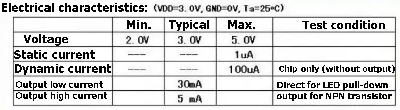 Falling edge trigger again. Chip Features: 1. The use of low-power CMOS technology, lead-free and environmentally friendly. 2. Direct Push can output low LED (please add current limiting resistor), the output high may push transistor (please add current limiting resistor).