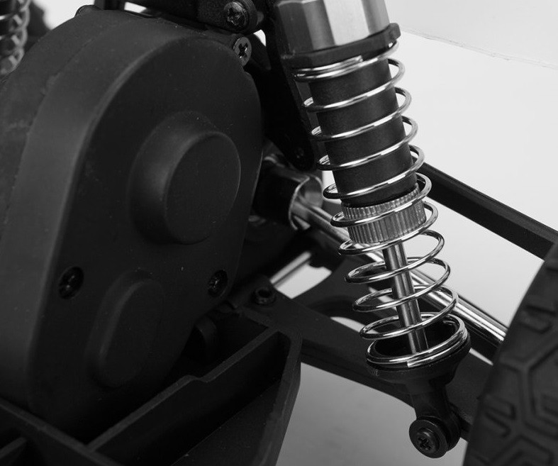 A széles nyomtáv és a nagy fém lengéscsillapítók töltve megfelelő olaj biztosítja a megfelelő tapadást és kanyarodási stabilitás, valamint a megfelelő távolság és 2WD hajtás a hátsó kerekek elvadul.