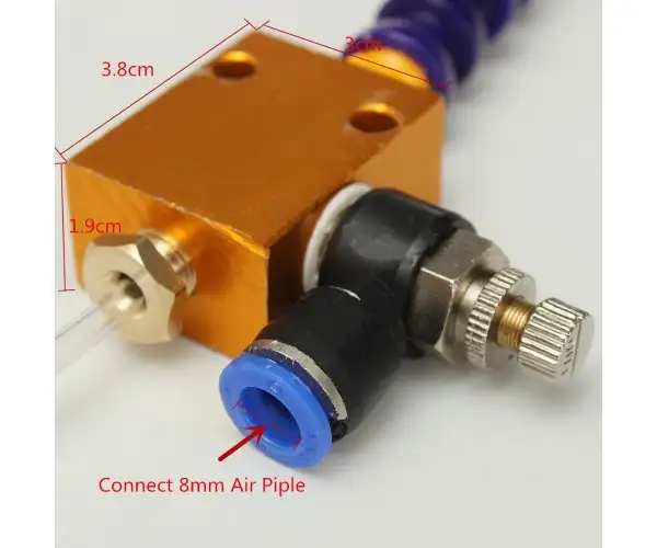 Szerszám hűtésre, működéséhez, hűtőfolyadék és sűrített levegő szükséges.