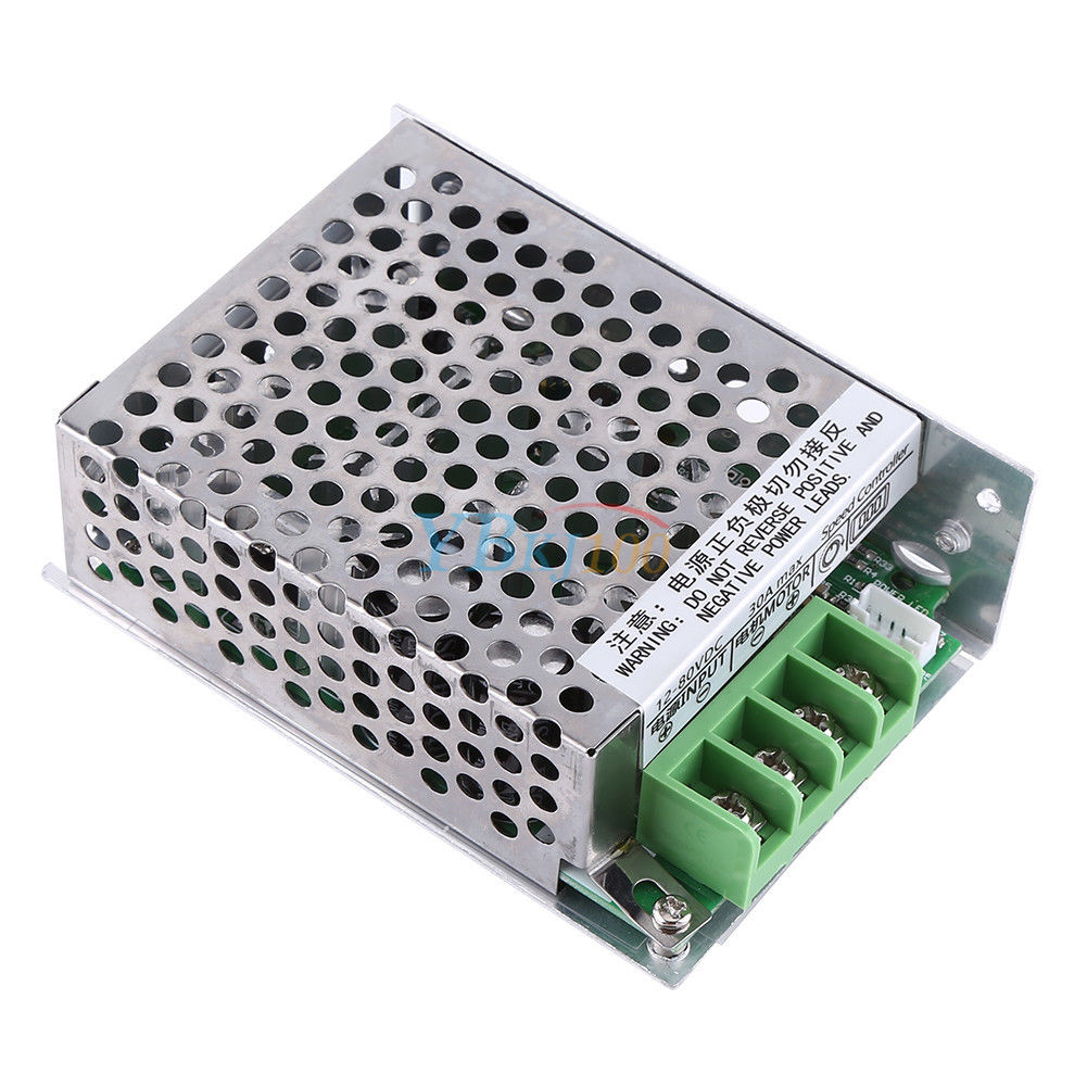This is a simple and easy-to-use DC motor speed controller of small size, elegant appearance and stable performance. It is made with high quality circuit board which ensures a longer service life. The input voltage can be DC 12V to 80V and output voltage is 0-100% of the input voltage. This speed controller support soft start and soft stop, which is quite convenient to set.