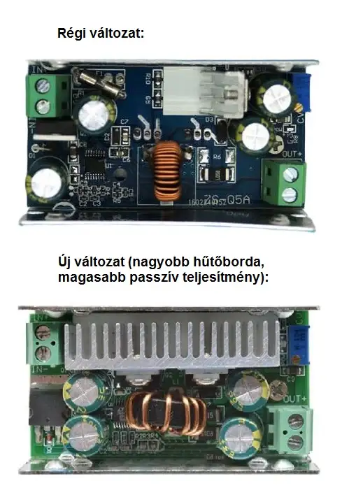 Kimenet állítható, tipikus használati értékek: 5V, 12V, 19V, 24V