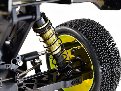 Thunder Tiger Off-Road Buggy. A fejlett futómű 16 mm-es hidraulikus lengéscsillapítóval rendelkezik, amely a markolatot és a hibatűrést szolgálja.