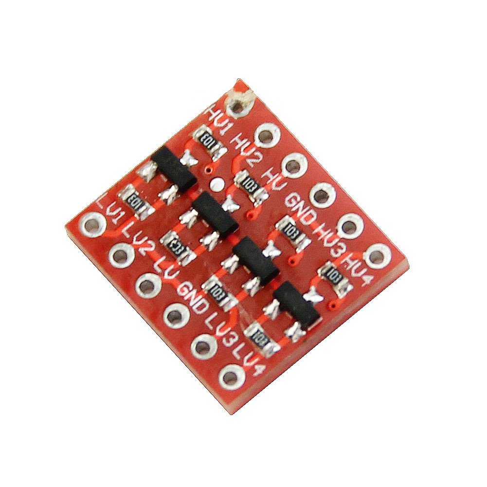 If you've ever tried to connect a 3.3V device to a 5V system, you know what a challenge it can be. bi-directional logic level converter is a small device that safely steps down 5V signals to 3.3V AND steps up 3.3V to 5V at the same time. This level converter also works with 2.8V and 1.8V devices. What really separates this Logic level converter from our previous versions is that you can successfully set your high and low voltages and step up and down between them safely on the same channel. Each level converter has the capability of converting 4 pins on the high side to 4 pins on the low side with two inputs and two outputs provided for each side