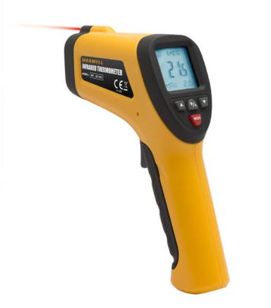 Infravörös hőmérsékletmérő műszer lézer irányzékkal. Általános hőmérsékletmérési feladatokhoz ideális ha nehezen megközelíthető a mérendő felület. Használatával elkerülhetőek az égési sérülések mérés közben. Könnyű és ergonomikus kialakítású készülékház.