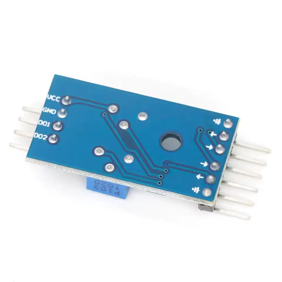 Led visszajelzés, csatornánként állítható érzékenység, hagyományos LM393 műveleti erősítő IC-vel duál komparátor módban.