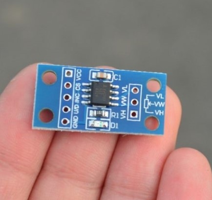 A digitális potméter hagyományos ellenállás osztó potméterként viselkedik az áramkörben, a középső lábán analóg feszültségszintet ad, de mikroprocesszorral vezérelhető, pl Arduinoval.