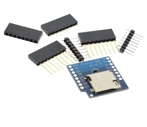 Kifejezetten WeMos modulokhoz való pajzs, de tetszőleges mikroprocesszorhoz, Arduinos projekthez, stb. beköthető micro SD kártya adapter.