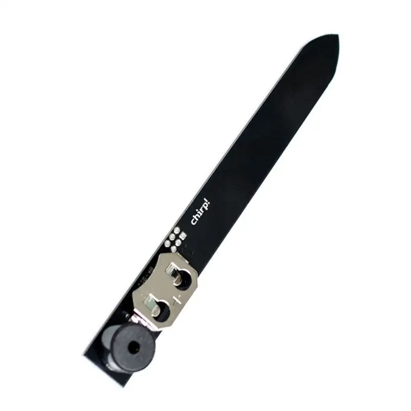 This module is a plant watering alarm - as simple as that. You put it into the soil near a plant and it emits a tiny chirp when the soil is dry, reminding you to water the plant. Chirp uses capacitive humidity sensing as opposed to resistive humidity sensing, this means, it does not make an electric contact with the soil, avoiding electrode corrosion and soil electrolysis and resulting in better accuracy and longer battery life.
