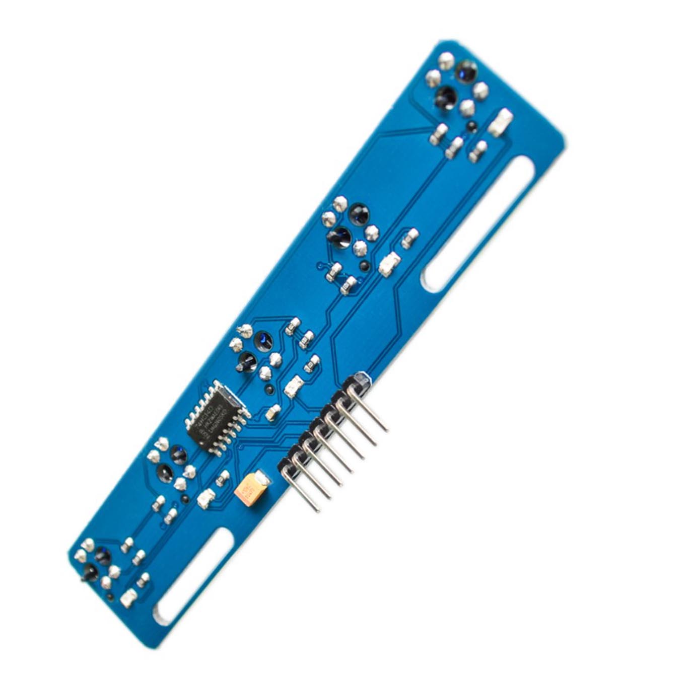 5-channel tracing module analog output, analog output and distance, object color related. The stronger the infrared reflection (white), the larger the output, the weaker the infrared radiation (black), and the smaller the output. The closer the detector is to the black line, the smaller the output, so that the distance of the black line can be judged by the output analog. The smaller the value, the closer the sensor is to the black line. Compared with other track sensors that can only output high and low levels, the 5-channel analog output of this product can feedback the distance of the black line, and the feedback is more accurate.