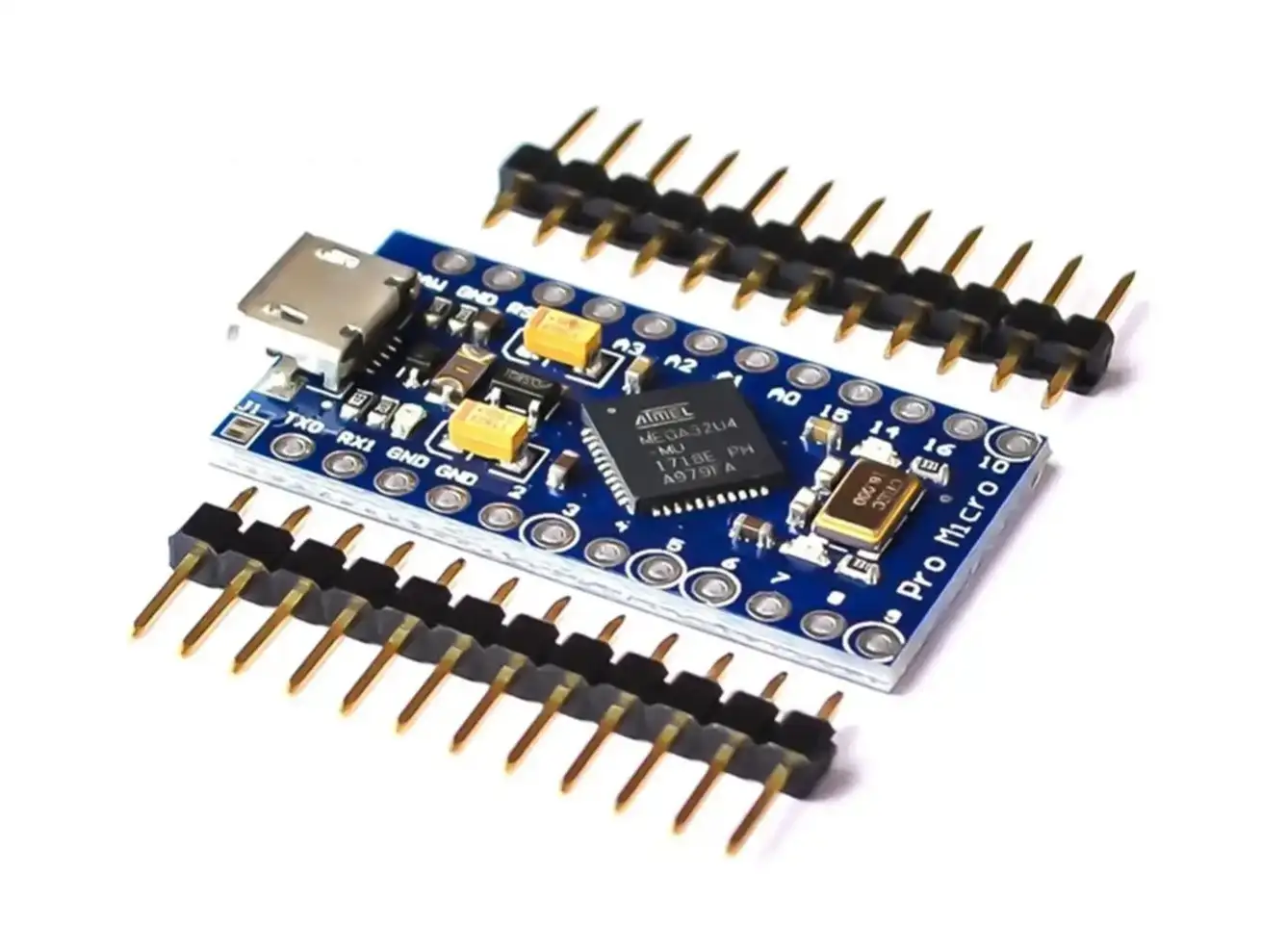 The Pro Micro is similar to the Pro Mini except with an ATmega32U4 on board. The USB transceiver inside the 32U4 allows us to add USB connectivity on-board and do away with bulky external USB interface.