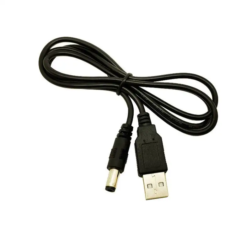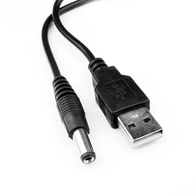 DC tápkábel USB bemenettel és szabvány 5.5/2.1mm kimenettel, így közvetlenül 5V-os eszközök táplálására DC csatlakozóval.