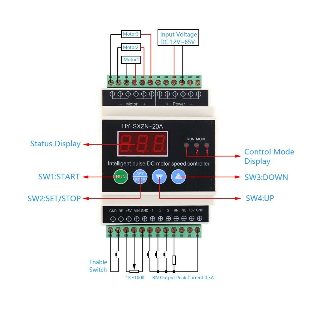 HY-SXZN20A is a PWM motor driver with red display module.It can control the speed of the connected load.It has been widely used in industrial production.