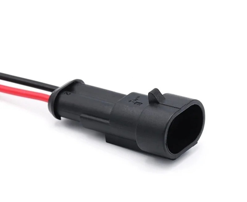 Vízálló csatlakozó pár kábellel szerelve. Széleskörű felhasználásra járművekben, autó motor, kerti eszközök, stb. Vízálló csatlakozású kivitel.