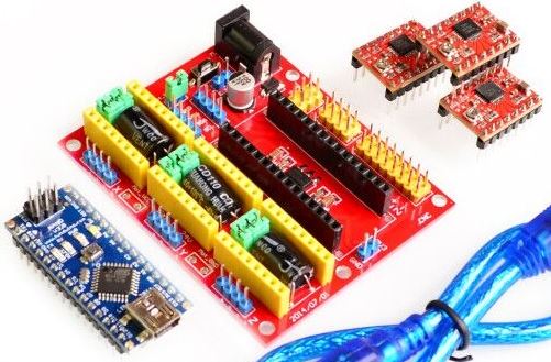 A Pajzs 3 kimenetet tartalmaz, amibe az A4988 motorvezérlő modul, vagy a még erősebb DRV8825 motorvezérlő illeszthető. Ebben a szettben tartozék az Arduino és a motorvezérlők is.