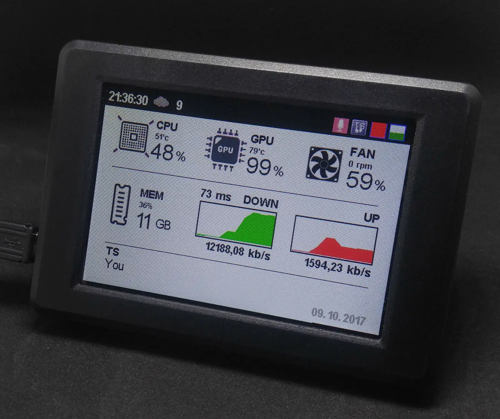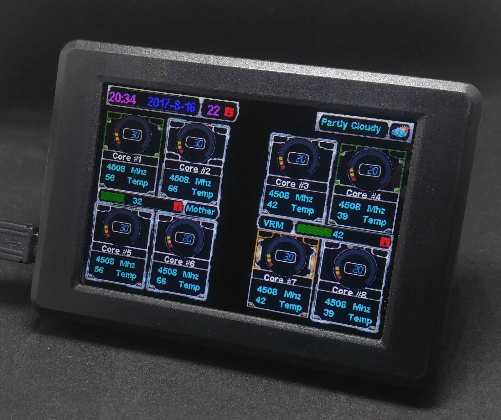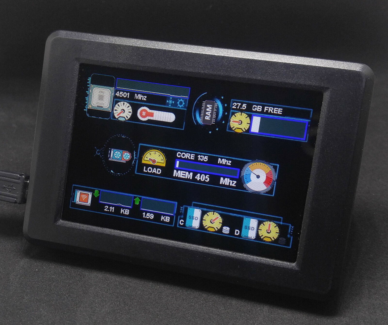 Goverlay application features: LCD Screenshots Capture, highly customizable: More LCD display profile can be view in our forum. Hardware Information * LCD: 3.5" TFT LCD, resolution 480x320, 262k colours * microUSB connection * Support Windows XP, Vista, Windows 7, 8, 10 32&64 bit * Dimension 103x66x10mm * Dimension (PCB) 97.2x54.5x5mm (PCB Have mounting holes for mounting to computer case directly) GOverlay is developed by Ezequiel Gonzalez and it is a free software. "LCDsysinfo for GOverlay v2.0" is developed by Coldtears Electronics. This device use a microUSB connection, which use same USB data transfer cable with most commonly used mobile phone (e.g. Samsung, HTC, Nokia, LG, etc.). For enivronmental issues, the cable will NOT be shipped and we recommend to reuse the old cables. If you do not have such a cable, please leave us a message we will include it in the package. Download: 1. Download for Goverlay (Free software) and also the LCD Driver for windowsPackaging list: 1. LCDsysinfo for GOverlay 2.0 device 2. MicroUSB kábel (nem tartozék ,külön rendelhető) |