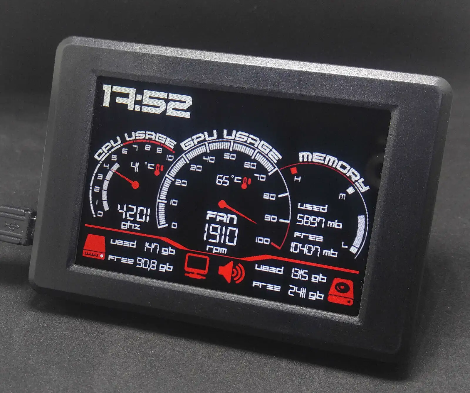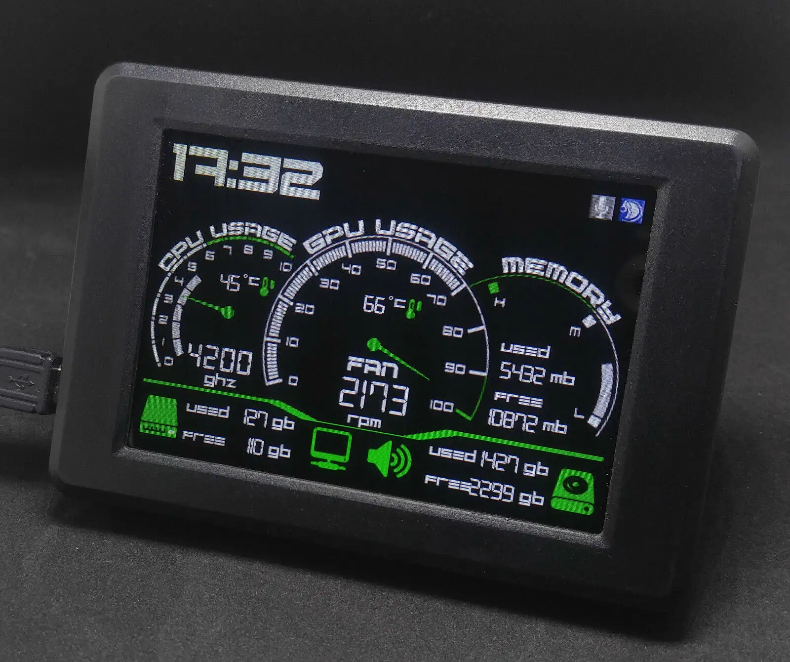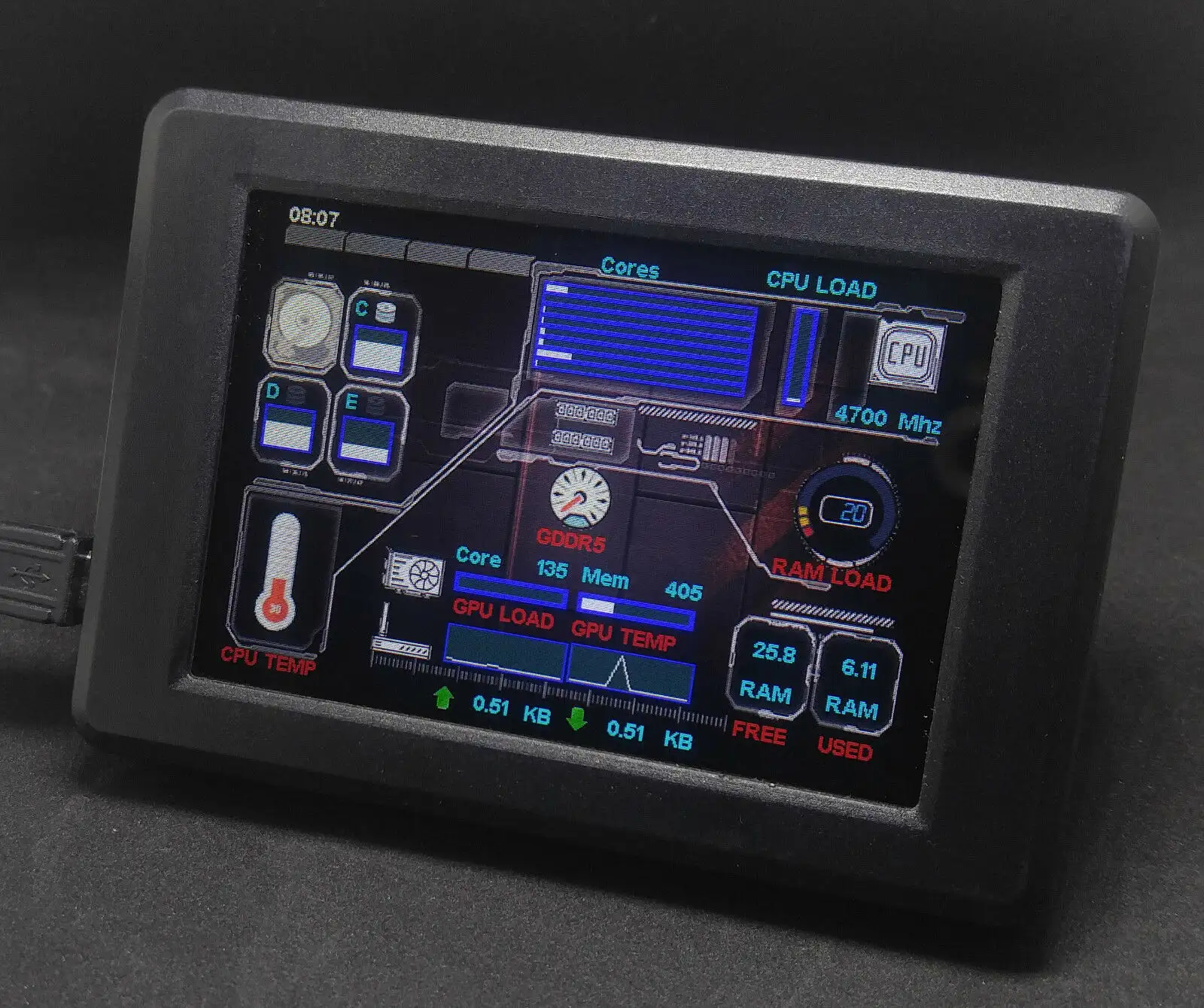 Goverlay application features: LCD Screenshots Capture, highly customizable: More LCD display profile can be view in our forum. Hardware Information * LCD: 3.5" TFT LCD, resolution 480x320, 262k colours * microUSB connection * Support Windows XP, Vista, Windows 7, 8, 10 32&64 bit * Dimension 103x66x10mm * Dimension (PCB) 97.2x54.5x5mm (PCB Have mounting holes for mounting to computer case directly) GOverlay is developed by Ezequiel Gonzalez and it is a free software. "LCDsysinfo for GOverlay v2.0" is developed by Coldtears Electronics. This device use a microUSB connection, which use same USB data transfer cable with most commonly used mobile phone (e.g. Samsung, HTC, Nokia, LG, etc.). For enivronmental issues, the cable will NOT be shipped and we recommend to reuse the old cables. If you do not have such a cable, please leave us a message we will include it in the package. Download: 1. Download for Goverlay (Free software) and also the LCD Driver for windowsPackaging list: 1. LCDsysinfo for GOverlay 2.0 device 2. MicroUSB kábel (nem tartozék ,külön rendelhető) |