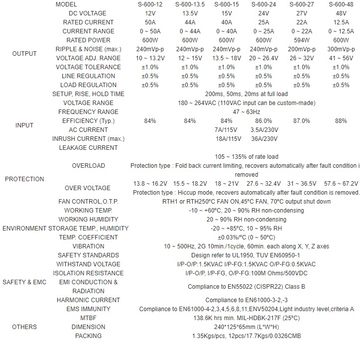 Stabilizált tápegység 230V/12V 600W Stabilizált tápegység 230V/12V 600W