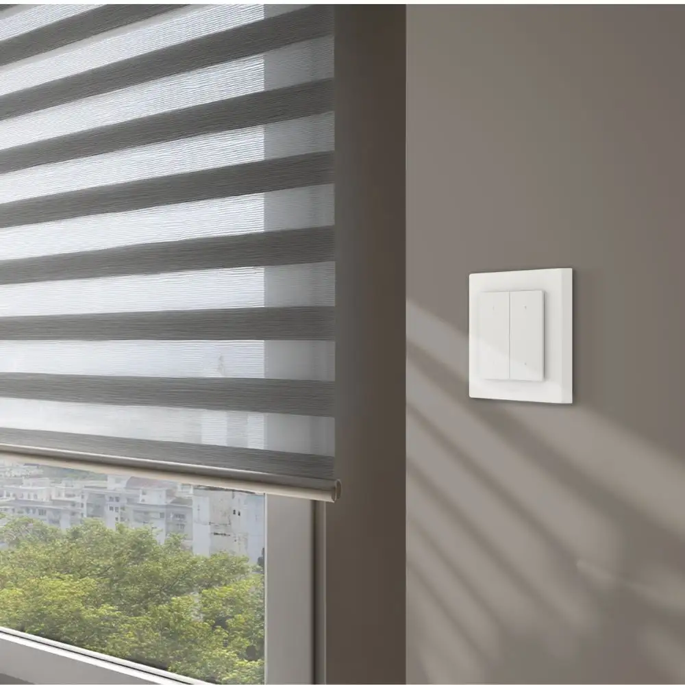 Az Aqara Shutter Switch H2 EU (DS‑K02D) egy okos fali kapcsoló, melyet kifejezetten roló, redőny, reluxa stb. vezérlésre terveztek. Thread és Zigbee protokollokat támogatva zökkenőmentesen illeszkedik különböző okosotthon platformokba. A bal oldalon található intuitív gombokkal nyitható, zárható vagy megállítható a redőny, míg a jobb oldalon elhelyezett, egyéni funkciókra állítható vezeték nélküli gombok bővítik az automatizálási lehetőségeket.