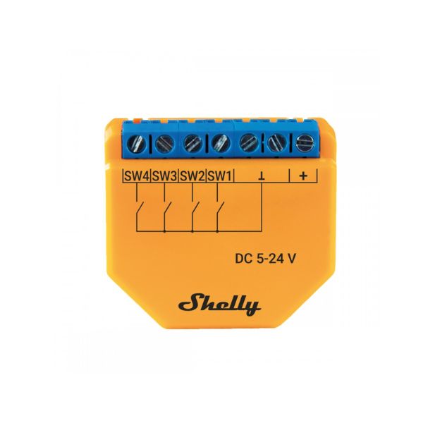 Képes fogadni akár 4 db rákötött fizikai kapcsoló jelét is, és ezek mindegyikéhez akár 3 féle eseményt kapcsolni. A 3 féle kapcsolási módokhoz hozzárendelhetünk a Scene (Jelenet) funkcióban is különböző parancsokat, de az eszközök közötti DDD vezérléssel is meghívhatunk más eszközöket URL-ből és küldhetünk nekik így parancsot. A Shelly PLUS i4 DC tehát használható fali fizikai kapcsolóról való jelenetvezérlésre is.