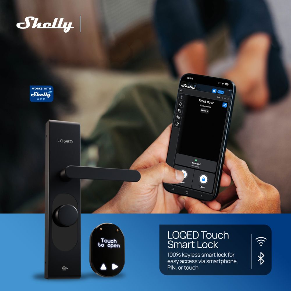 A Shelly LOQED Touch Smart Lock Black Edition egy prémium kategóriás, teljesen kulcs nélküli okos zár, amely a legmagasabb szintű biztonságot és kényelmet kínálja. A "Touch to Open" technológia lehetővé teszi az ajtó nyitását egyszerű érintéssel, amennyiben a felhasználó Bluetooth-on keresztül csatlakoztatott okostelefonja a közelben van. Emellett a zár PIN-kóddal vagy távoli hozzáféréssel is vezérelhető, így ideális megoldás otthoni, irodai vagy Airbnb használatra.