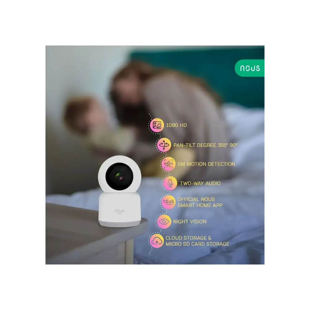 A Nous W2 okos Wi-Fi kamera kiváló választás az otthoni biztonságért. Ez a beltéri kamera 2MP érzékelővel rendelkezik, amely kristálytiszta HD videót biztosít. A kamera képes motorosan forogva körülnézni, dönteni és zoomolni, így a szoba minden sarkát lefedi, és 135 fokos széles látószögű lencsével rendelkezik a szélesebb látómezőért. Kétirányú hangkommunikációval is rendelkezik, így bárhonnan hazaszólhatsz és hallgathatod a családot, háziállataidat vagy látogatóidat.