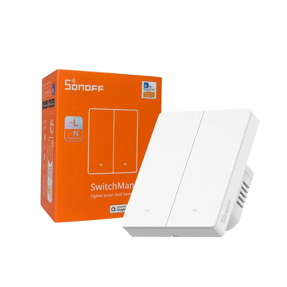 A Sonoff M5 SwitchMan ZBM5-2C-80W egy Zigbee 3.0 protokollon kommunikáló, fizikai nyomógombos, 2 áramkörös okos villanykapcsoló, amely ideális választás azok számára, akik világítási rendszereiket szeretnék okossá tenni. Mivel az okos kapcsoló nem csak fázis+nulla bekötéssel, hanem csak fázisvezetékkel (nullvezeték nélkül) is képes működni, így használhatjuk régi vezetékezésű lakások retrofit, azaz utólagos okosításához is. A 80 mm széles sorolható termékverzió a Sonoff (külön kapható) kettes, hármas vagy négyes sorolókeretébe is beilleszthető.