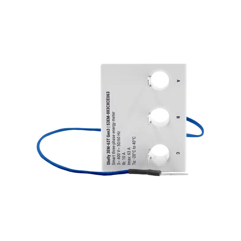 - Shelly 3EM-63W Gen3: Ez a modell vezetékekkel van ellátva, amelyek rugalmasabbá teszik a telepítést, különösen akkor, ha az eszközt nem lehet közvetlenül a megszakítóhoz csatlakoztatni. Ez a kialakítás lehetővé teszi az eszköz távolabbi elhelyezését a megszakítótól, ami hasznos lehet bizonyos telepítési környezetekben.