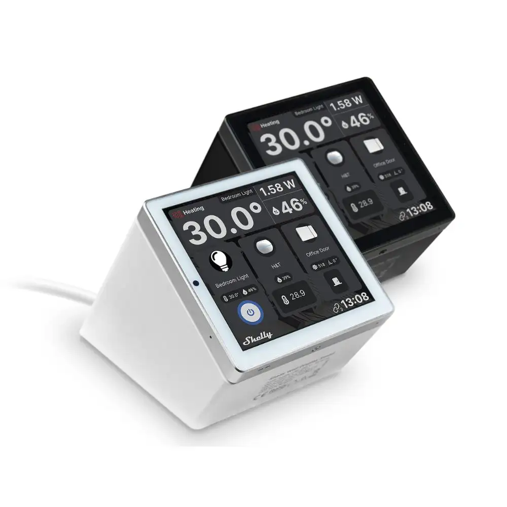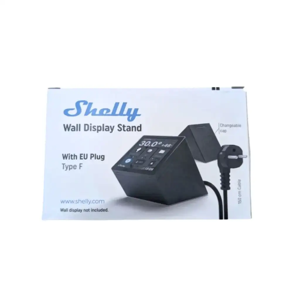 A Shelly Wall Display Stand egy asztali tartó, amelyet kifejezetten a Shelly Wall Display-hez terveztek, és lehetővé teszi, hogy a kijelzőt kényelmesen asztali vezérlőpanelként használd. A tartó beépített vezetékezéssel és hálózati csatlakozóval érkezik. Ez a fekete színű változat.