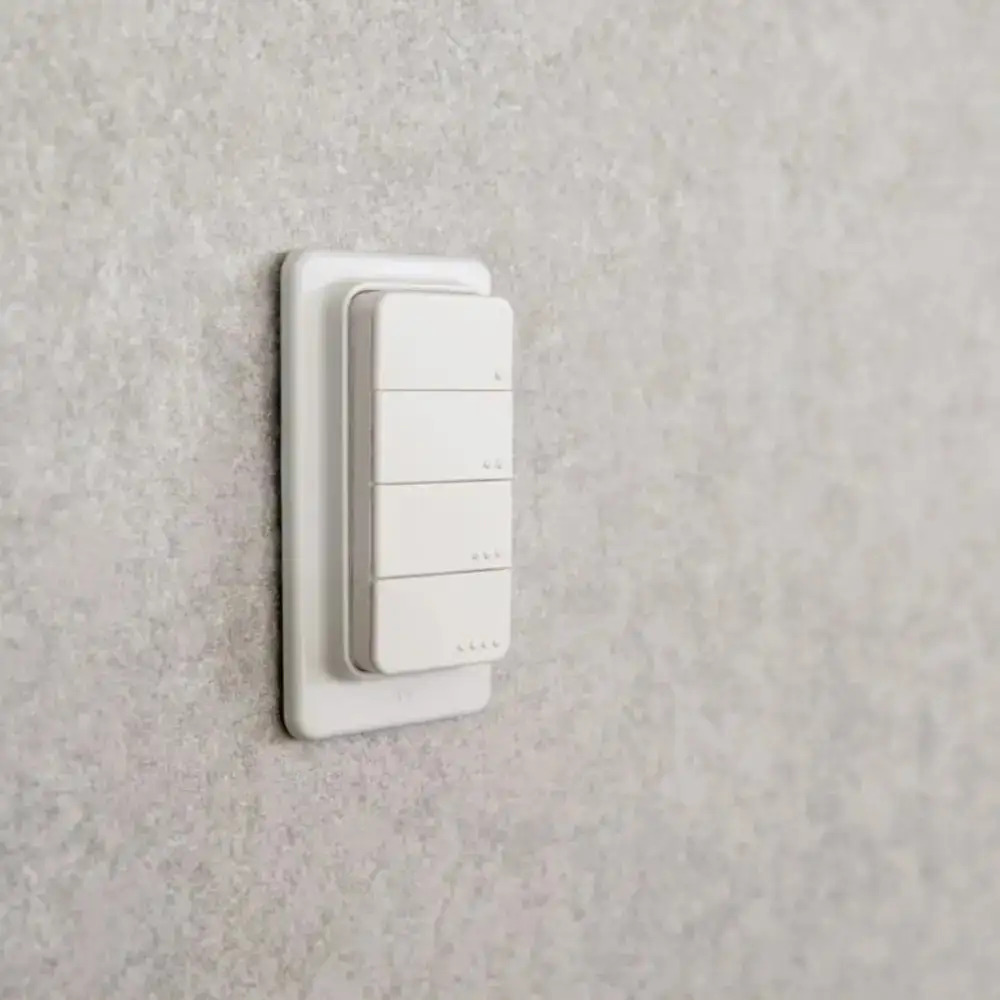 A Shelly BLU Wall Switch 4 egy kiváló választás azoknak, akik egyszerű módon szeretnék további kapcsolási pontokkal bővíteni otthonukat anélkül, hogy új vezetékezéssel, véséssel kellene bajlódniuk. A Bluetooth kapcsolatnak köszönhetően a jelenetk indítása vagy a már Shelly vezérlő modulokkal automatizált világítás és egyéb eszközök irányítása soha nem volt még ilyen egyszerű.