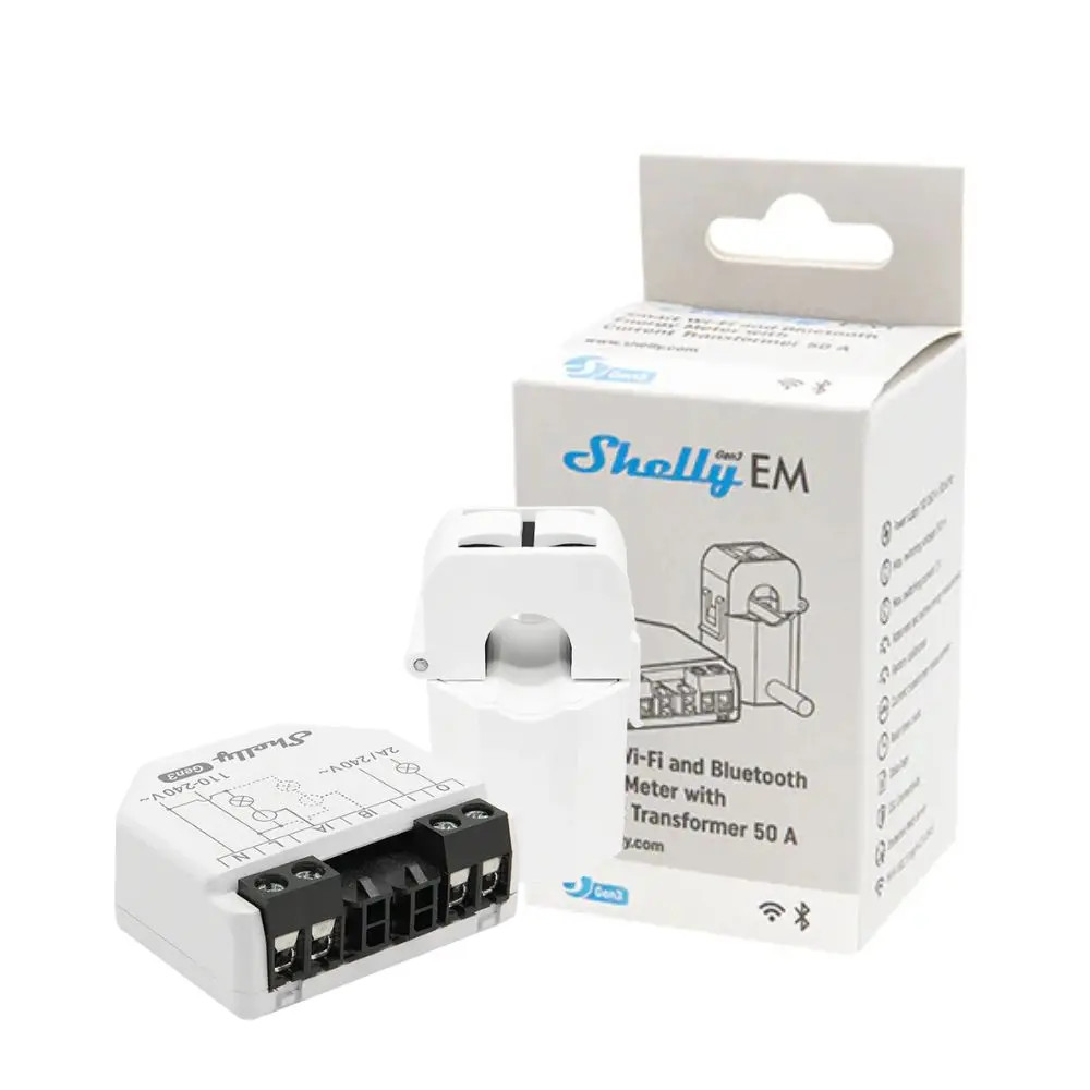 A Shelly EM Gen3 egy professzionális, kompakt méretű, okos fogyasztásmérő, amely lehetővé teszi a háztartások, vállalkozások és elektromos eszközök fogyasztásának valós idejű nyomon követését. Részletes információkat nyújt az energiafelhasználásról, hogy segítse a felhasználókat az energiafogyasztás optimalizálásában és a költségek csökkentésében. A terméknek része 1 db 50A áramváltó is, mellyel kontakt-mentes mérést végezhetsz.