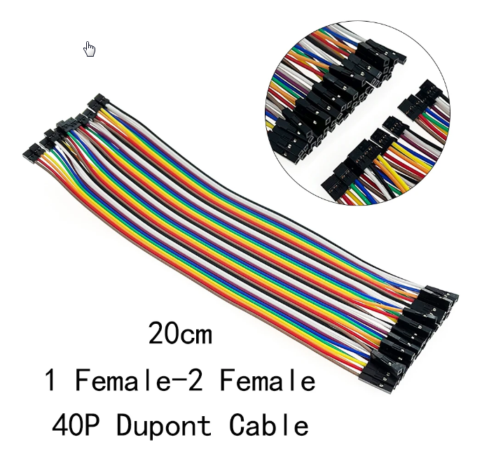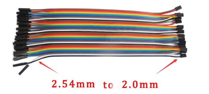 1 szettben 40db kábel van, egyik oldalon 2P anya 2.0mm lábtávú csatlakozóból 20db, másik oldalon 1P anya 2.54mm lábtávú csatlakozóból 40db