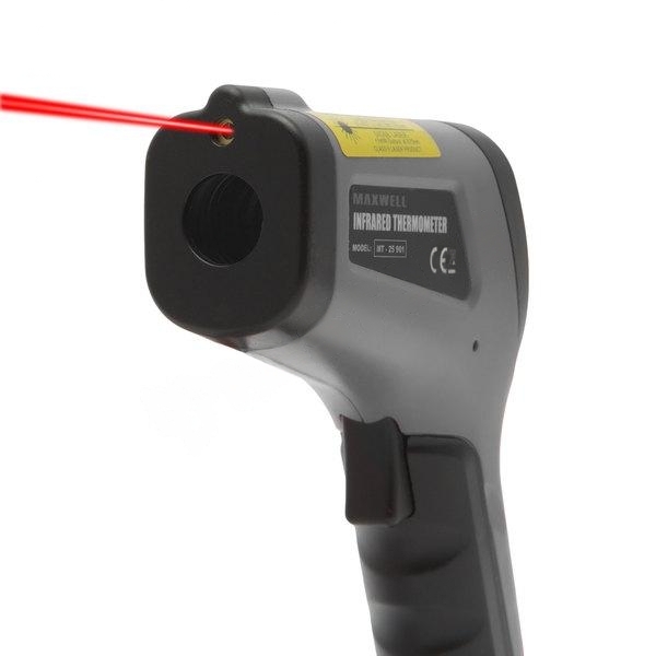 Infravörös hőmérsékletmérő műszer lézer irányzékkal és K típusú mérőszondával kiegészítve. Professzionális hőmérsékletmérési feladatokhoz ajánlott, ha nehezen megközelíthető a mérendő felület. Minimum, maximum, átlag eredmények kijelzése és széles intervallumban állítható emisszivitási érték jellemzi. Használatával elkerülhetőek az égési sérülések mérés közben. Könnyű és ergonomikus kialakítású készülékház.