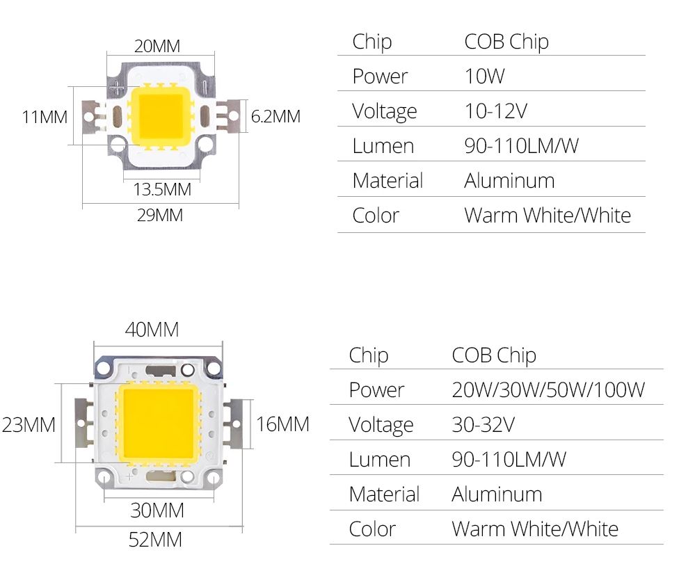 Forward Voltage: 9-12V (10W), 30-36V (20-100W)
