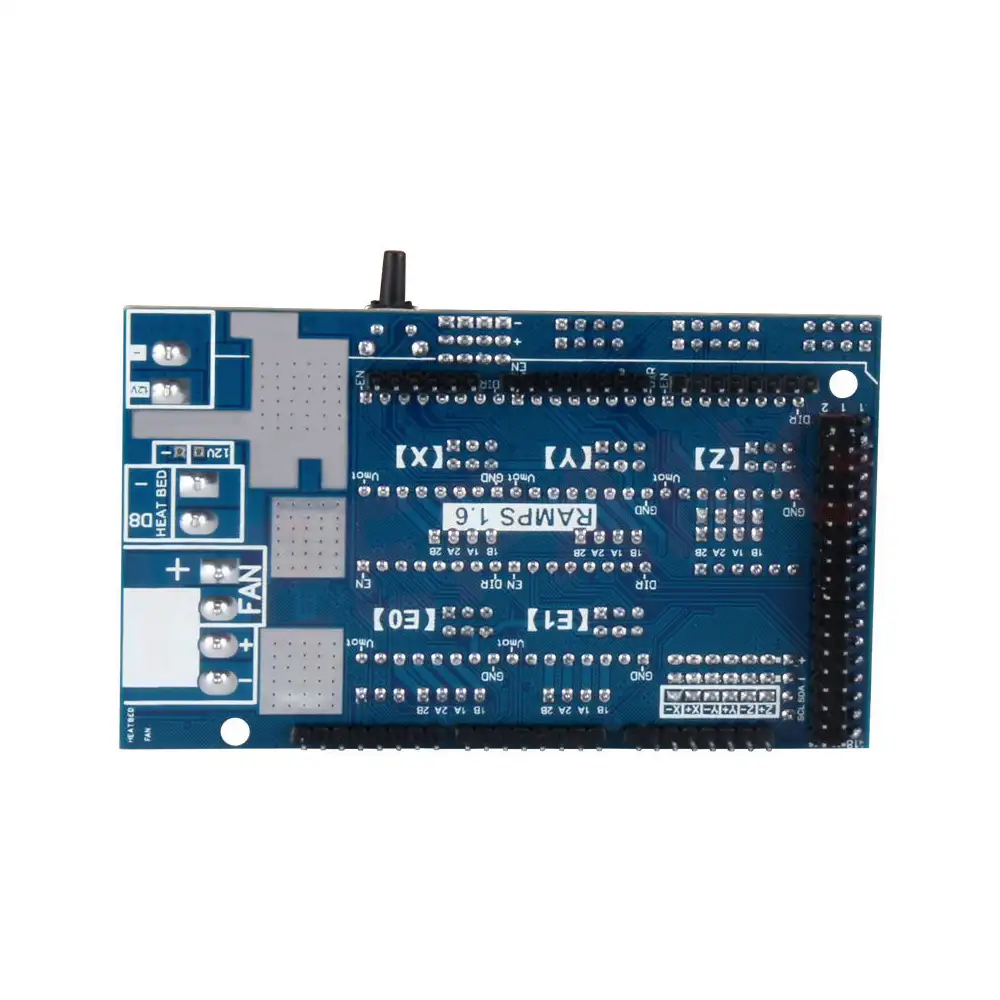 The features of multiple extended interface and replaceable parts make RAMPS1.5 become a control board with powerful upgrade capability and scalable modularity.