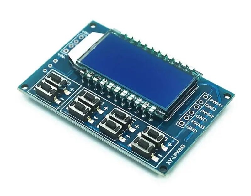 A működéséhez 2 gombbal állítható a frekvencia (PWM), és 2-2-2 gombbal a kitöltés (duty cycle) a csatornákhoz, a digitális kijelzőn leolvashatóak az értékek.