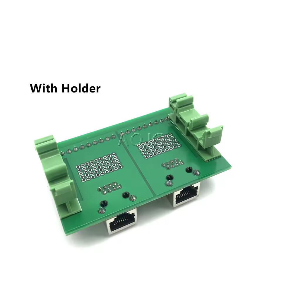 RJ45 4-Way Buss Board Interface Module with Simple DIN Rail Mounting feet and panel mounting foot.