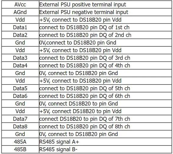 DC 7-30V 8 Channel RS485 DS18B20 Temperature Collector