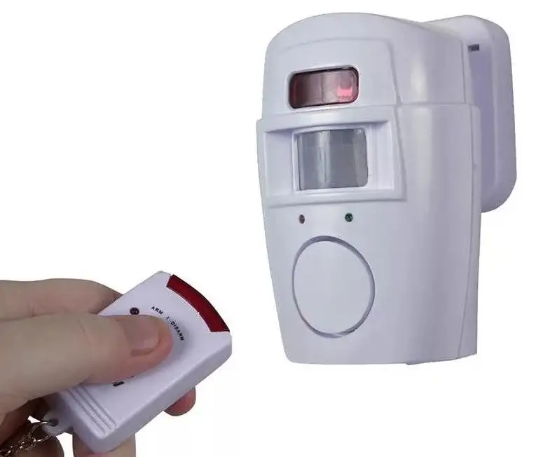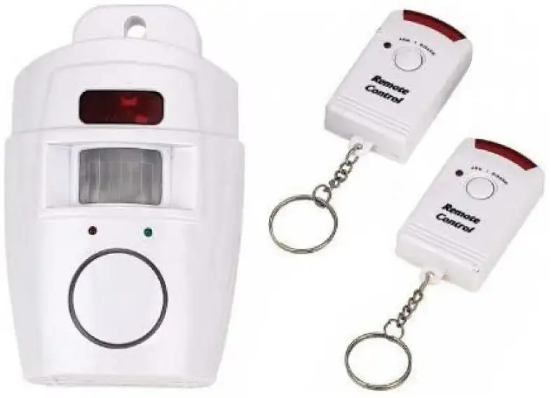 Otthoni riasztó egység mozgásérzékelővel és szirénával, két távirányítóval.